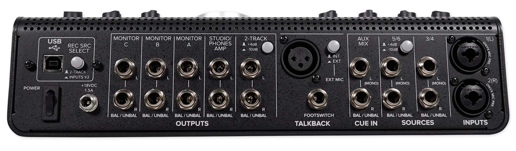 - Professional source and monitor selection to choose between 4 sources and 3 monitor pairs with classic Big knob volume control and independent trim on all sources and monitor Outs